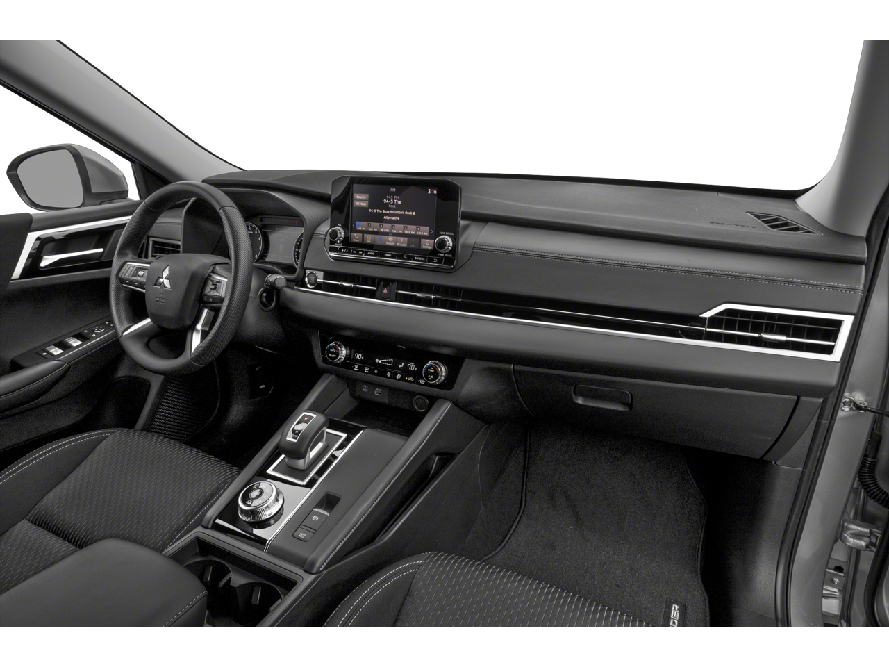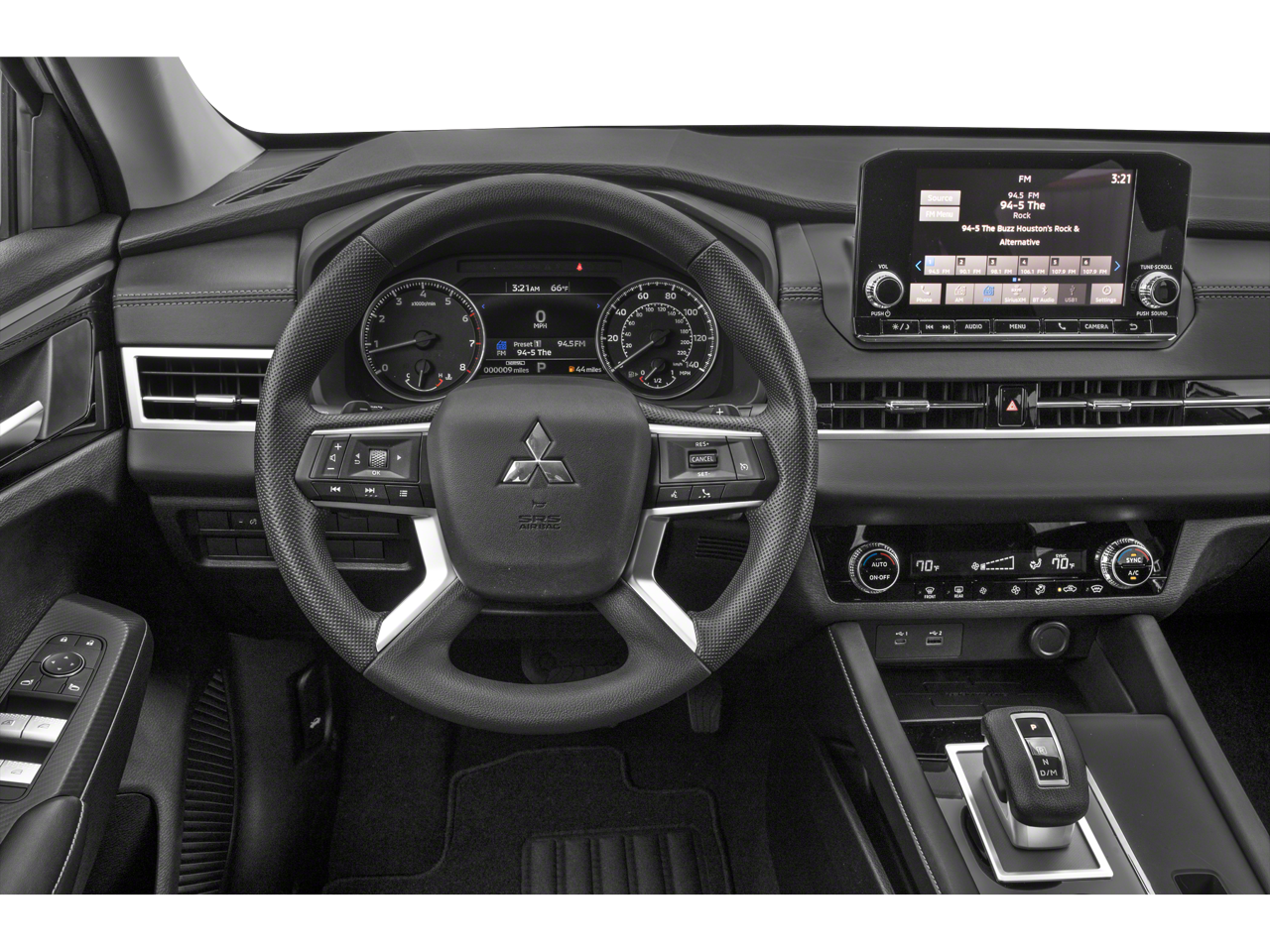 - Radio: AM/FM 8.0" Smartphone Link Display Audio -inc: 6 speakers, Apple CarPlay, Google Android Auto, SXM all-access and SXM traffic and travel link w/90-day subscription, Mitsubishi Connect, HD Radio, smartphone wireless charger, Bluetooth® wireless technology, steering wheel controls for phone, audio and voice recognition and USB ports
