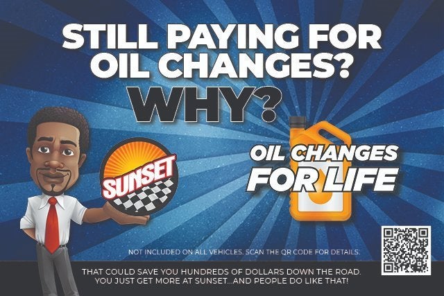 Disclaimer “MSRP” is an acronym for Manufacturer’s Suggested Retail Price. This is required for all manufacturers to provide. MSRP is not an offer to sell at that price. It is the “Manufacturer’s Suggested Retail Price” before extras. “MSRP” will be exactly the same for any new vehicle with the exact same make, model, model year, equipment, and options at every franchise dealership in the United States. No dealer has a competitive advantage over another with MSRP. ‘Dealership price’ or ‘sale price’, when shown, reflects the sale price of the vehicle, including all applicable rebates and discounts unless expressly shown differently. Accessories & dealer-installed modifications are included in the “Dealership Price”. ‘Dealership price’ or ‘sale price’ does not include tax, title, government fees, a negotiable $200 document processing fee, license, vehicle registration or any financing fees. Contact us for details on any applicable fees or taxes that may apply to your specific situation. Sunset will always provide you with a clear and transparent summary of the final sale price and all applicable fees and taxes. All vehicles are “one only” and are identified by VIN and/or stock number. Some manufacturer discounts, rebates, incentives, and special financing cannot be combined or stacked. Not all customers qualify for all available manufacturer discounts, rebates, incentives, and special financing. Contact the dealership to verify which manufacturer discounts, rebates, incentives, and special financing you qualify for. Sunset will work to ensure that you will receive all applicable manufacturer incentives. All prices, specifications, and availability subject to change without notice. Contact dealer for most current information. While we make every reasonable effort to ensure the accuracy of the information displayed on this website, some prices may not include dealer installed added options, some features and options listed may not apply to this Sunset Vehicle. Please verify any information in question with a dealership sales representative prior to any negotiations. Customers should verify the existence and condition of any equipment listed. EPA Estimates Only. Your actual MPG may vary based on your driving characteristics. All offers expire on close of business the day subject content is removed from website, and all financing is subject to credit approval. All transactions are negotiable including price, trade allowance, interest rate (of which the dealer may retain a portion), term, and documentary service fee. Any agreement is subject to execution of contract documents. Warranty Protection for Life™ is included on all qualifying new and pre-owned vehicles. Some restrictions may apply. Contact the dealership for details on your vehicle of interest. This warranty is honored at any ASE certified repair facility in The United States and Canada. Note: There is now a modest $200 deducible per claim. Manufacturer maintenance requirements and records are mandatory. Contact dealer for complete details. There are some vehicles that are not eligible for this coverage. A complete list of ineligible vehicles is available upon request. Warranty Protection for Life is not included on vehicles purchased by a business entity or used for Commercial & Fleet purposes. Owners are responsible for maintaining their vehicle according to the original manufacturer’s recommendations. Failure to do so or keep records may void your warranty. Aftermarket vehicle modifications may void your warranty. Contact dealer or review your warranty agreement for details on maintaining this coverage. Sunset’s Oil Changes for Life is included on all qualifying new and pre-owned vehicles. Some restrictions may apply. Contact the dealership for details on your vehicle of interest. See dealer for complete details. There are some vehicles that are not eligible for this coverage. A complete list of ineligible vehicles is available upon request. Verify prior to purchase if a vehicle comes with either Warranty Protection for Life or Oil Changes for Life. Although every reasonable effort has been made to ensure the accuracy of the information contained on this site, absolute accuracy cannot be guaranteed. This site, and all information and materials appearing on it, are presented to the user "as is" without warranty of any kind, either express or implied. All vehicles are subject to prior sale. Price does not include applicable tax, title, and license charges. ‡Vehicles shown at different locations are not currently in our inventory (Not in Stock) but can be made available to you at our location within a reasonable date from the time of your request, not to exceed one week. If you have any questions about or would like clarification on any information found on this website, please contact us. The Manufacturer’s Suggested Retail Price excludes tax, title, license, dealer fees and optional equipment. Dealer sets final price.