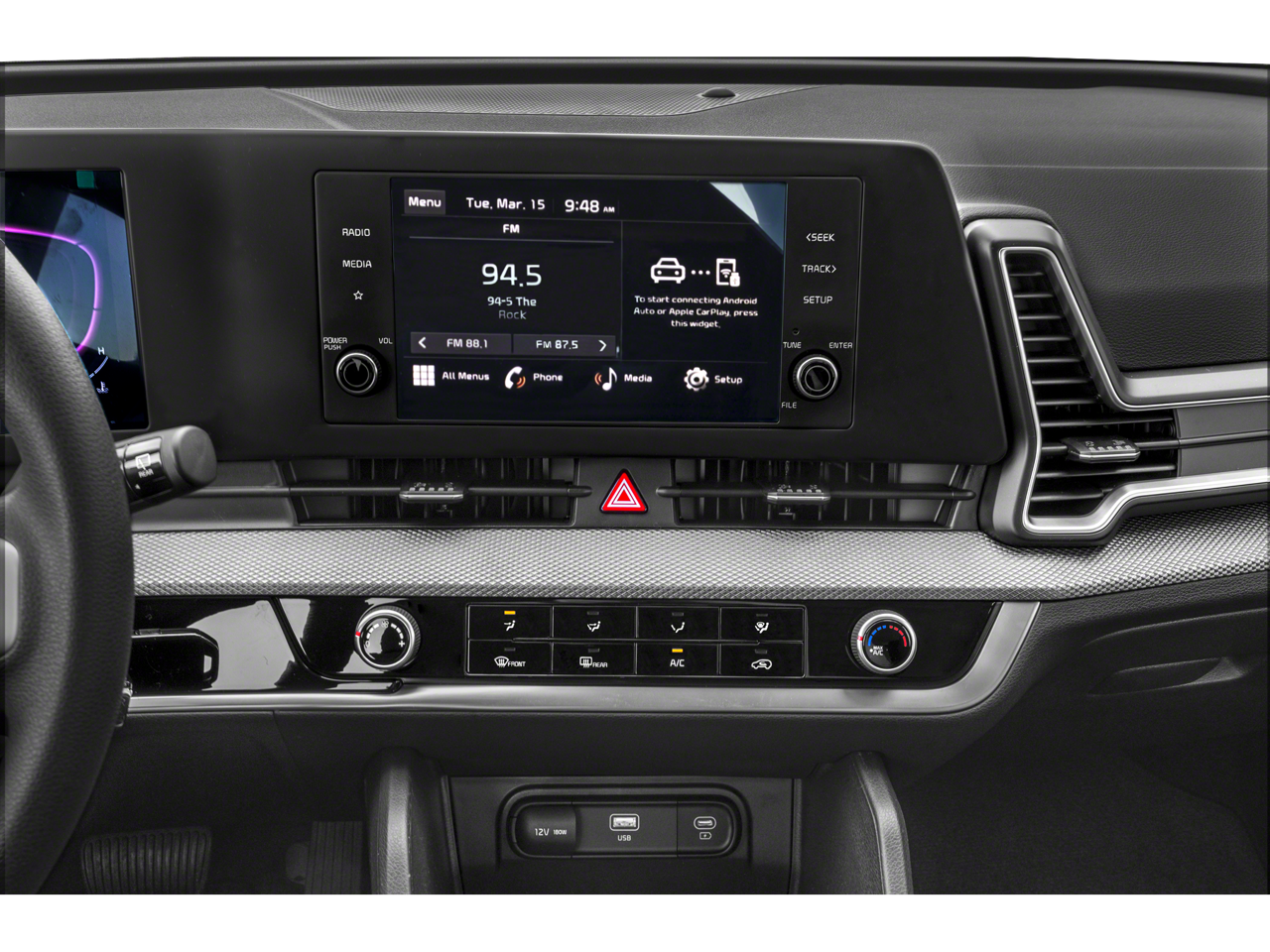 - Front USB charge port